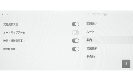 交差点拡大図(→さまざまなレーン表示画面)のON/OFF設定をします。