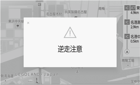 • 以下のようなときは、誤って逆走注意案内が行なわれる場合があります。
