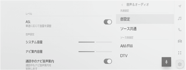 車両の速度と連動して、自動的にオーディオの音量が調整されます。