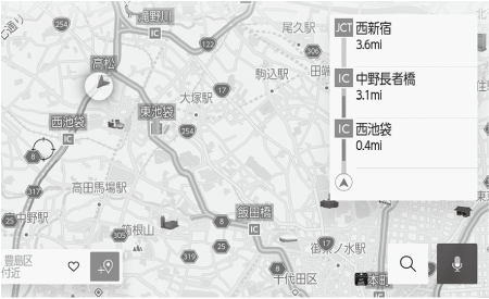 交通情報の表示/非表示の切り替えは地図表示設定画面で行います。(→地図表示設定をする)