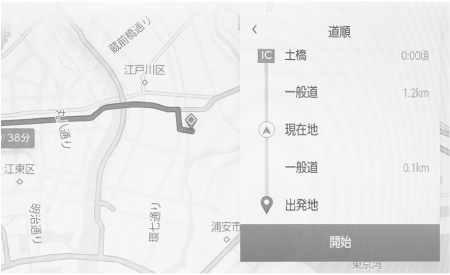 ルート探索終了後、ルート情報(道路名称・距離・通過予想時刻)を表示させることができます。