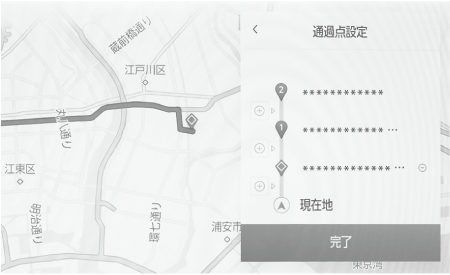 目的地を設定したあと、ルート上の通過する地点を設定することができます。
