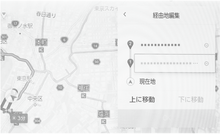 ルート上に設定している経由地の順番の変更、および削除ができます。
