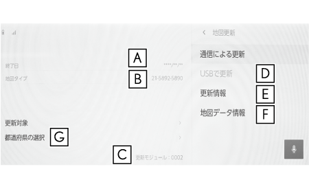 地図更新に関する情報の確認や操作は、地図更新画面から行います。