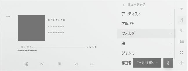 USB Type-C端子に接続したUSBメモリー内の音楽ファイルを再生して、音楽を楽しむことができます。USBメモリーを接続すると、ソース選択画面には、その機器名称のボタンが表示されます。機器によっては、表示されないことがあります。