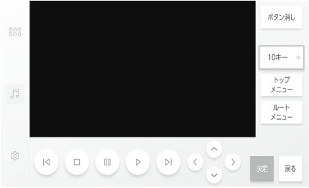 []:選択し続けると、早戻しします。手を離すと、その位置から再生します。