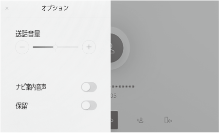 • [ナビ案内音声]:通話中のナビゲーション音声案内の割り込みをON/OFFできます。