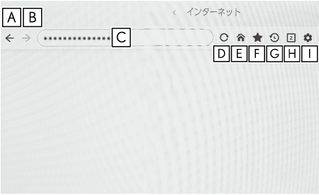 Webブラウザ画面の操作は表示されているページ項目へのタッチ操作、またはWebブラウザ画面の上部にあるツールバーで行います。