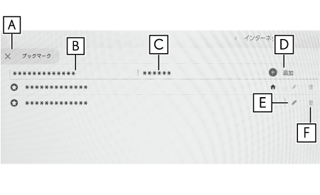 - ブックマーク管理画面を開いたときに表示していたページのURLを表示します。タッチするとURLを編集することができます。