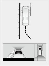 同時に車幅平行線と目標物が平行になるように運転操作することで、目標物に沿って駐車できます。
