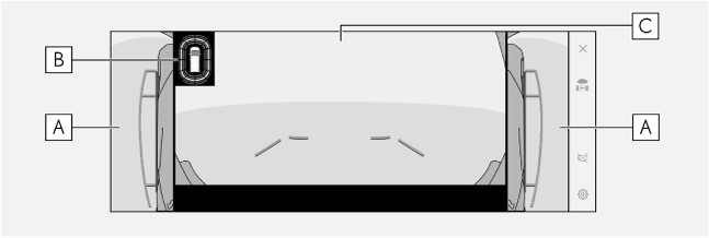ドアミラーを格納した場合、パノラミックビューのかわりにサイドカメラからの映像が表示されます。狭い場所での幅寄せ駐車の際などに、車両周辺の安全確認を補助します。