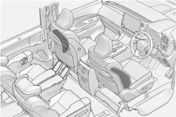 次のSRSエアバッグは、斜めから衝撃を受けた場合や、客室部分以外の側面に衝撃を受けたときに作動しない場合があります。