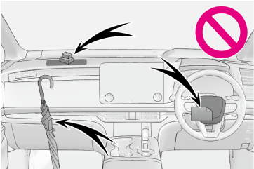 ダッシュボード・ハンドルのパッド部分などには何も取り付けたり、置いたりしない