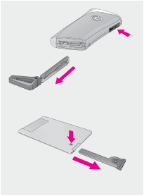 メカニカルキーが取り出しにくいときは、ボールペンの先などでロック解除ボタンを押してください。引き出しにくいときは、コインなどで引っかけてください。