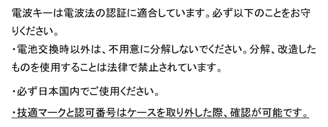 電子キー表面にシールなどを貼らない