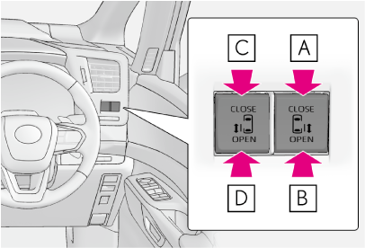 - 助手席側パワースライドドアを開閉する(押し続ける)スライドドアを解錠してから操作してください。