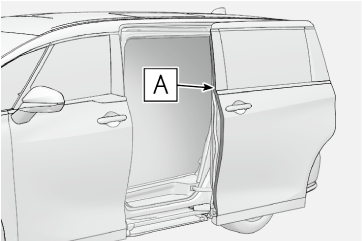 中間ストッパー位置で停止したスライドドアを全開にするときは、給油扉を閉じ、いったんスライドドアを全閉にしてから、再度スライドドアを開けてください。