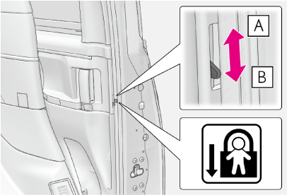 施錠側にすると、インサイドドアハンドルを使用してスライドドアを開けられなくなります。