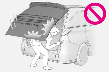不意にバックドアが開いたり、閉めるときに手・頭・首などを挟んだりするおそれがあります。