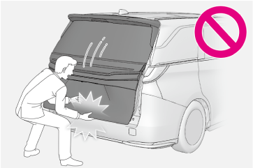 バックドアイージークローザーの作動中は無理な力をかけないでください。無理な力をかけると、バックドアイージークローザーの故障の原因となります。