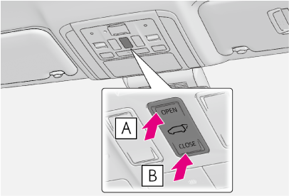 開閉作動中にスイッチを押すと、作動が停止します。作動が停止した状態から再度スイッチを約1秒間押し続けると、バックドアは反転作動します。