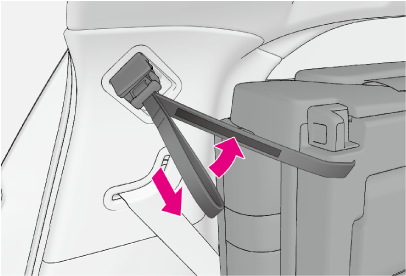シート格納時にシート固定ベルトで固定されていない場合、シート脚部が動き、荷物やシートが破損したり、けがをするおそれがあります。シートを格納したときは、必ずシートを固定してください。