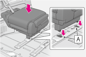 シートを降ろしたときは、シートを上から押し込んでシート脚部が床面ロック部