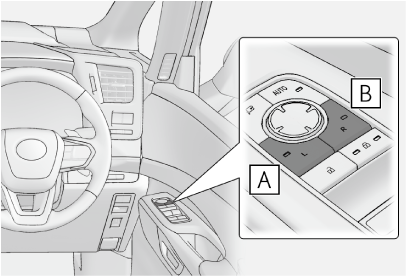お好みのミラー角度をドライビングポジションメモリーに登録すると、自動で調整されます。(→ドライビングポジションをポジションメモリーボタンに登録するには)