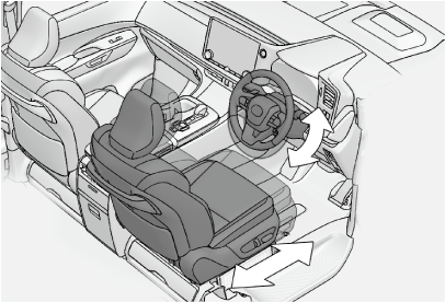シート調整中は、シートがセカンド席乗員にあたったり、運転者の体がハンドルに圧迫されたりしないよう注意してください。