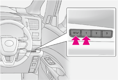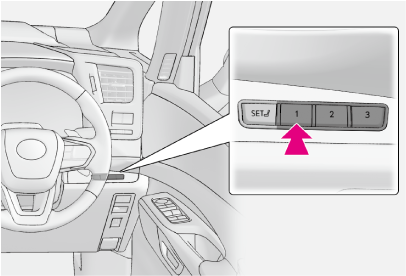 運転席ドアを開けて180秒以内、または運転席ドアを閉めて60秒以内に呼び出したいポジションのボタンを押すと、シートの位置が調整されます。