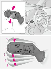レバーを操作すると、ワイパーまたはウォッシャーが作動します。