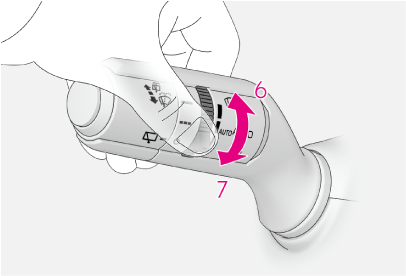 AUTOモード選択中にシフトポジションがPにあり、ワイパーが作動しているとき、フロントドアを開けるとワイパーの水しぶきが車両の近くにいる人にかかるのを防ぐためにワイパーの作動が停止します。フロントドアを閉めると作動を再開します。