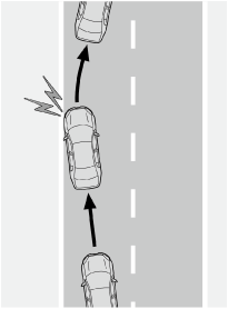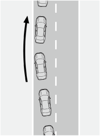 方向指示灯の点滅中であっても、となりの車線を走行中の車両と衝突する可能性があるとシステムが判断した場合、車線逸脱抑制機能が作動します。