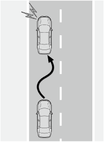 方向指示灯の点滅中であっても、となりの車線を走行中の車両と衝突する可能性があるとシステムが判断した場合、車線逸脱警報機能が作動します。