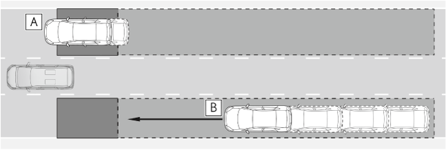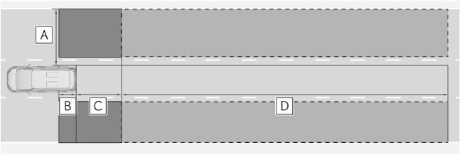 - ドアミラーインジケータードアミラーの死角領域に車両を検知したとき、または後方からその死角領域に急速に接近してくる車両を検知したときは、検知した側のドアミラーインジケーター(→表示灯一覧)が点灯します。検知した側に方向指示レバーを操作している場合は、ドアミラーインジケーターが点滅し、ブザーが鳴ります。