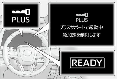 プラスサポートを使用するためには、プラスサポート用スマートキー(以下、サポキー)が必要です。プラスサポートおよびサポキーは販売店装着オプションです。