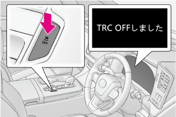 を押さなくてもマルチインフォメーションディスプレイに“TRC OFFしました”が表示されたときTRCが一時的に作動できない状態になっています。表示が継続する場合はレクサス販売店にご相談ください。
