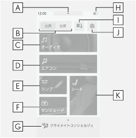 リヤアームレスト内のオペレーションパネルを使って、リヤのオーディオ・エアコン・シート・リラクゼーションシート・ランプの操作をすることができます。