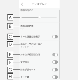 画面の操作規制の設定や画面の明るさなどを調整できます。