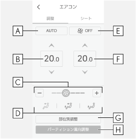 風量を増やすときは風量調整スイッチの“+”を選択するか、風量調整スイッチのアイコンを右へスライドします。風量を減らすときは風量調整スイッチの“-”を選択するか、風量調整スイッチのアイコンを左へスライドします。
