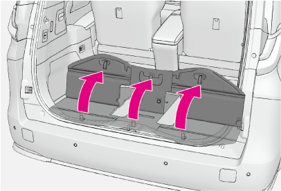 デッキボードを取りはずしたときは、走行前に必ずもとどおりに取り付けてください。取りはずしたまま走行すると、急ブレーキをかけたときなどにデッキボードや収納していたものが飛び出し、思わぬ事故につながるおそれがあり危険です。