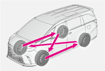タイヤの摩耗を均等にし寿命をのばすために、タイヤローテーション(タイヤ位置交換)を5,000kmごとに行ってください。
