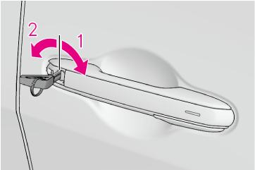 - ドアハンドルのスリット部にプラスチック製のカードなどを挿し込みカバーを浮かせる破損を防ぐためにカバーに過度の負荷をかけないでください。
