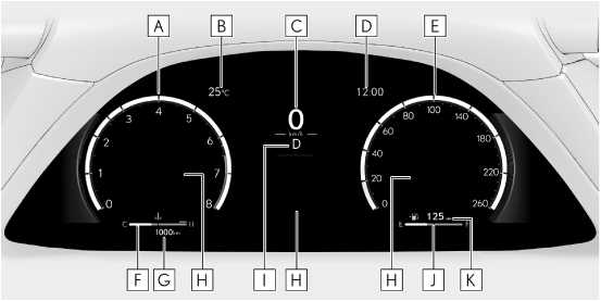 F SPORT:メーター表示タイプの設定がタイプ1で走行モードがスポーツモード以外のとき