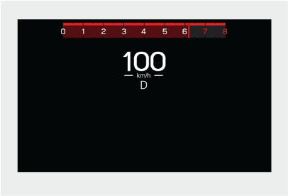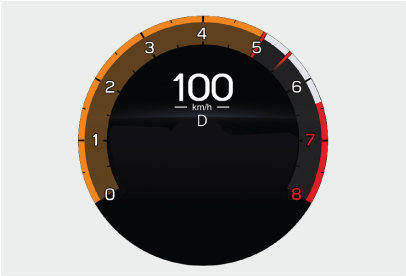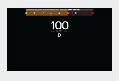 設定したエンジン回転数に到達したときは橙色、レッドゾーンに到達したときは赤色で表示されます。