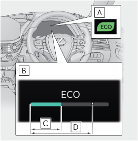 エコドライブインジケーターはヘッドアップディスプレイやマルチインフォメーションディスプレイに表示できます。