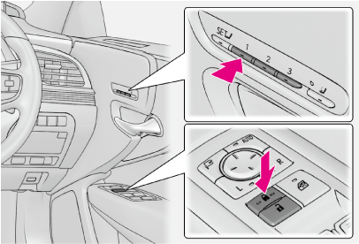 運転席ドアを開けて180秒以内、または運転席ドアを閉めて60秒以内に呼び出したいポジションのボタンを押すと、シートの位置が調整されます。