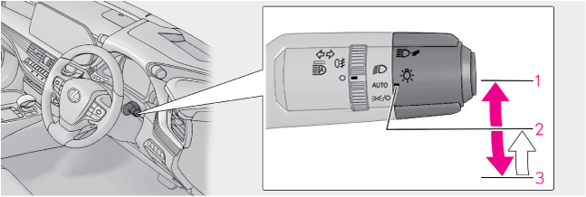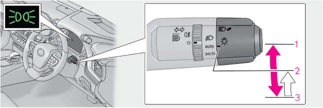 停車中のみ点灯可能。車両を発進させると2による点灯状態に切りかわります。