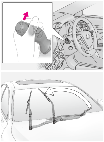 次のようにレバーを操作すると、ワイパーまたはウォッシャーが作動します。