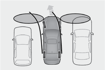クリアランスソナーは、車両と壁などの静止物とのおおよその距離を超音波センサーによって検知して、センターディスプレイの距離表示とブザー音、音声案内で運転者にお知らせします。